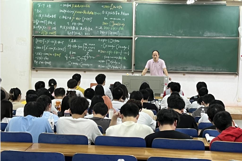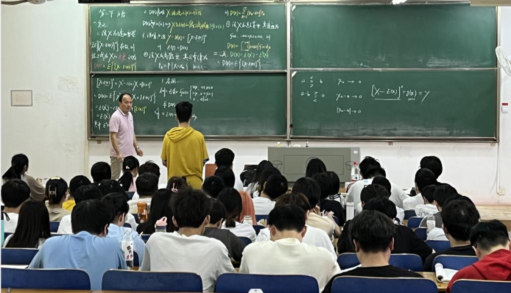 大学数学中心毛耀老师以《随机变量的方差》一课向各位观摩的老师和上课的同学展示了如何将课程思政融入教学。他首先回顾了上次课学习的随机变量的数学期望,谈到随机变量在日常生活中的应用,例如股票中的收益、努力学习后的考研目的,通过列举我校2023年的学生榜样人物的典型案例,激励同学们发奋进取,实现自己的最大希望,提高自身的学习水平,为祖国的繁荣昌盛添砖加瓦。
