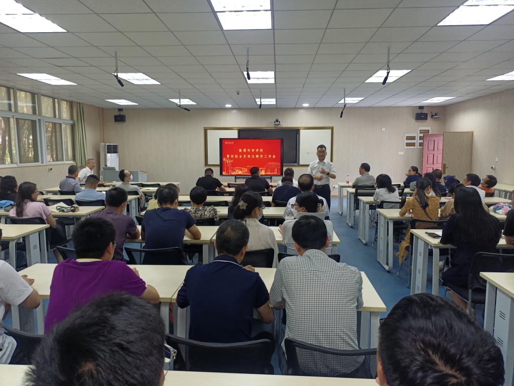 学院院长汪胜祥传达了《关于开展9428cn太阳集团古天乐第四轮全员岗位聘用工作的通知》,就学校第四轮全员聘用工作的指导思想、基本原则、实施范围和聘期、岗位等级、岗位设置、任职条件和资格、工作安排、聘用合同与考核、相关政策做了说明。