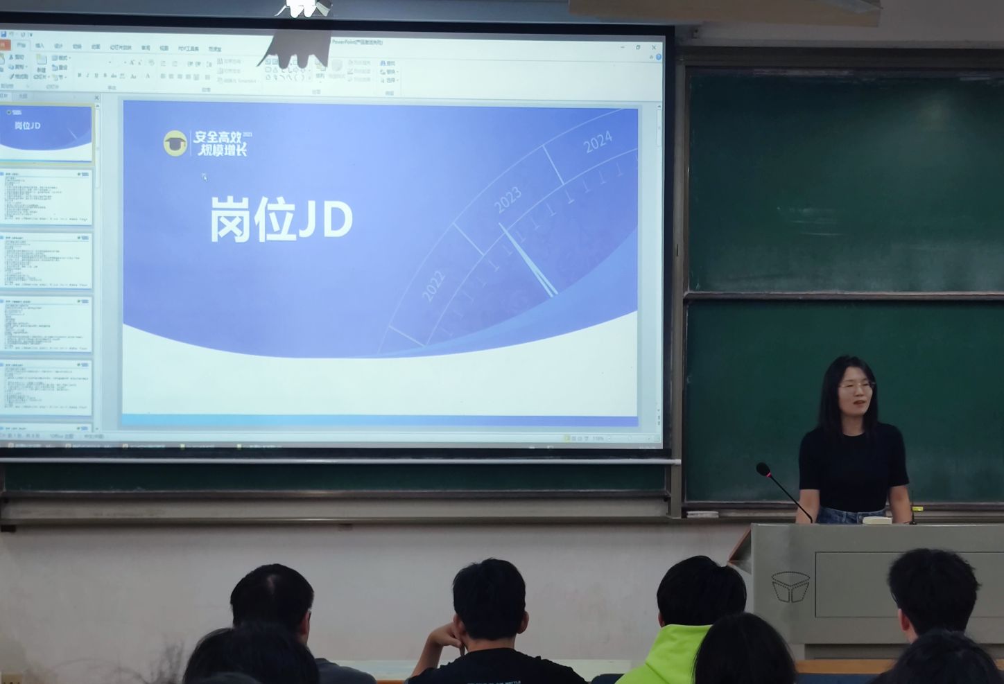会议期间,金博(教培行业)、亿纬锂能股份有限公司人事相关负责人进行了招聘宣讲,在座学生跃跃欲试,现场有15名同学通过面对面沟通,取得了面试资格,效果良好。