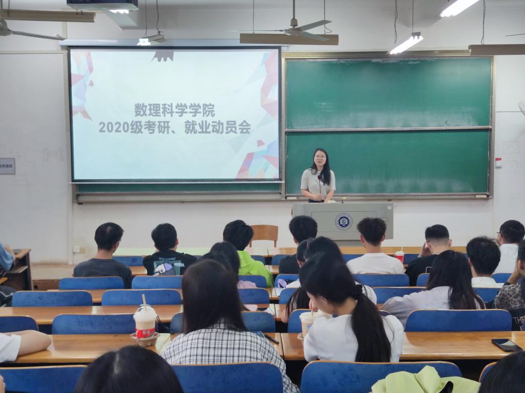 副院长郑仟首先开始考研动员。她通过数学学科的重要性、数学学子毕业去向、太阳概况、师资队伍、学科概况、招生专业目录与政策六个方面,深入浅出,细致详细的向大家讲述了当前严峻的考研形式以及我院考研的相关优势,鼓励大家在最后的时间,继续保持积极向上的劲头,努力进取,瞅准目标发力,争取一战上岸。