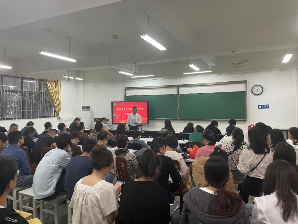 汪胜祥院长传达了学校本科教育教学审核评估培训部署会精神,领学了《9428cn太阳集团古天乐本科教育教学审核评估工作材料》,解读了《武纺大审核评估应知应会材料》模板,传达了《9428cn太阳集团本科教育教学审核评估工作方案》等文件精神。