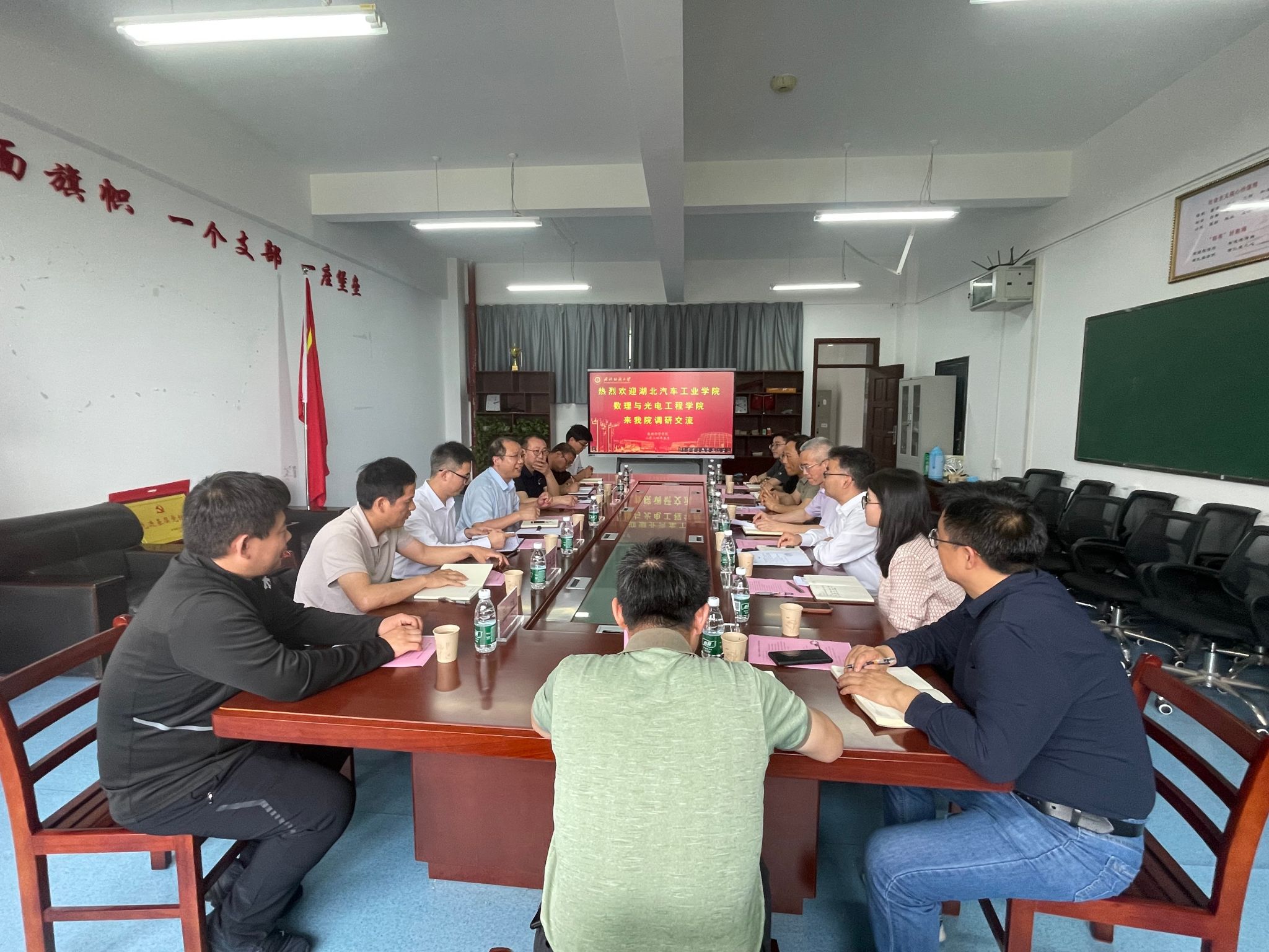 5月7日下午,湖北汽车工业学院数理与光电工程学院院长李建、副院长胡政发、张传坤等一行7人来学院调研交流,学院党委书记段溢波、院长汪胜祥、副院长许明耀、副院长郑仟、应数系主任江健、微电子系主任朱维、大数中心主任王洪山、教学督导组长郭健勇参加调研交流会,会议由汪胜祥院长主持。