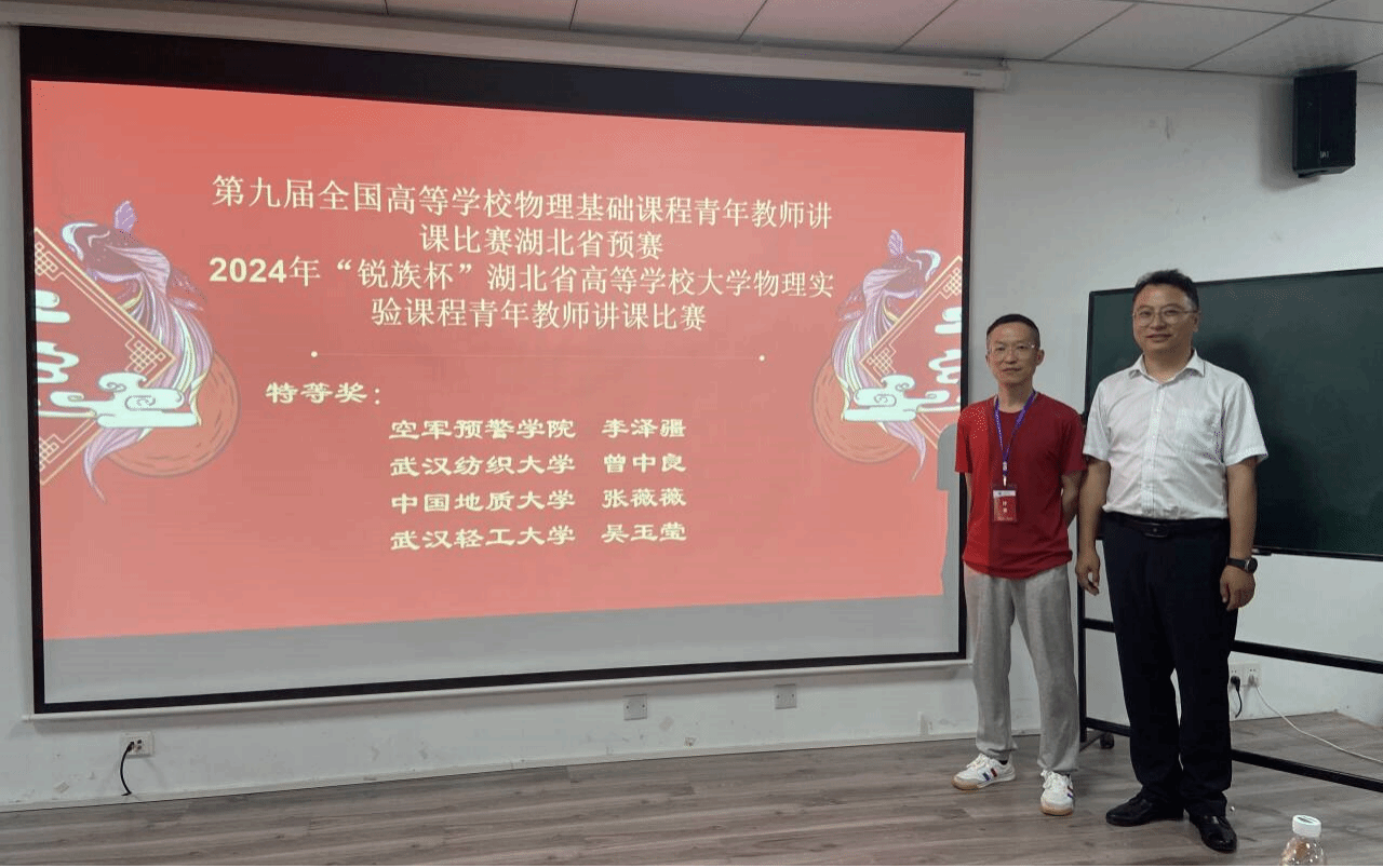 5月25日,由湖北省物理学会、湖北省高等学校实验物理教学研究会、湖北省物理实验示范中心联席会、教育部高等学校大学物理基础课程教学指导委员会湖北省工作委员会主办,文华学院承办的2024年全国高等学校物理基础课程青年教师讲课比赛湖北赛区预赛正式拉开帷幕。本次比赛吸引了来自武汉大学、华中科技大学等湖北省21所高校的青年才俊同场竞技,经过紧张激烈地角逐,我校9428cn太阳集团的曾中良老师成功脱颖而出,荣获特等奖,将代表湖北省优秀青年教师参加中南地区复赛。这是我校自参赛以来,连续三届获得省赛特等奖,进一步彰显我校大学物理实验课程的教学水平。
