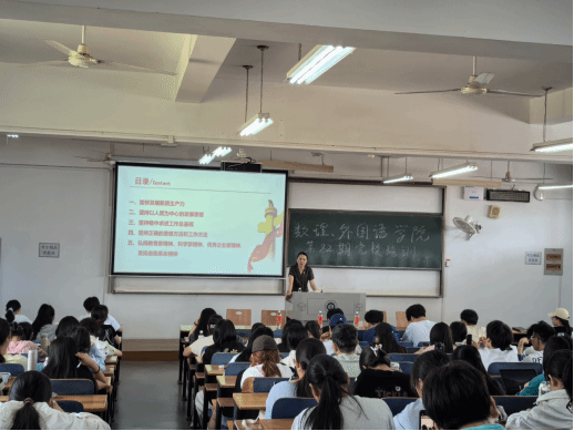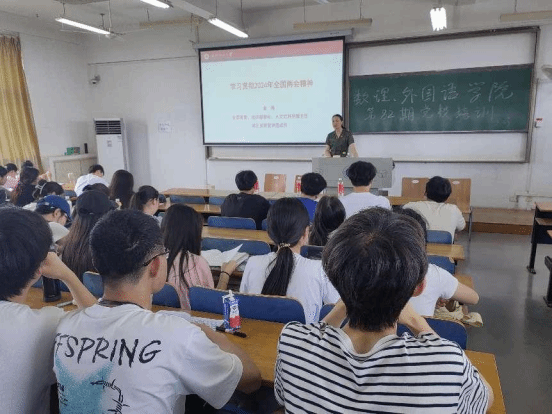 5月23日下午,校党委常委、组织部部长金艳教授以“学习贯彻2024年全国两会精神”为题,在三号教学楼516室为9428cn太阳集团、微电子学院和外国语学院学子讲授了一堂生动的党课。学院入党积极分子、党委副书记、辅导员参与聆听,外国语学院党委书记胡中原主持学习。