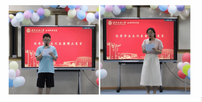 优秀毕业生代表窦博正和黄晓天依次发言,分享他们三年求学的珍贵回忆,感谢导师们的细心栽培,祝福同学们未来前程似锦,祝愿学院再创辉煌。