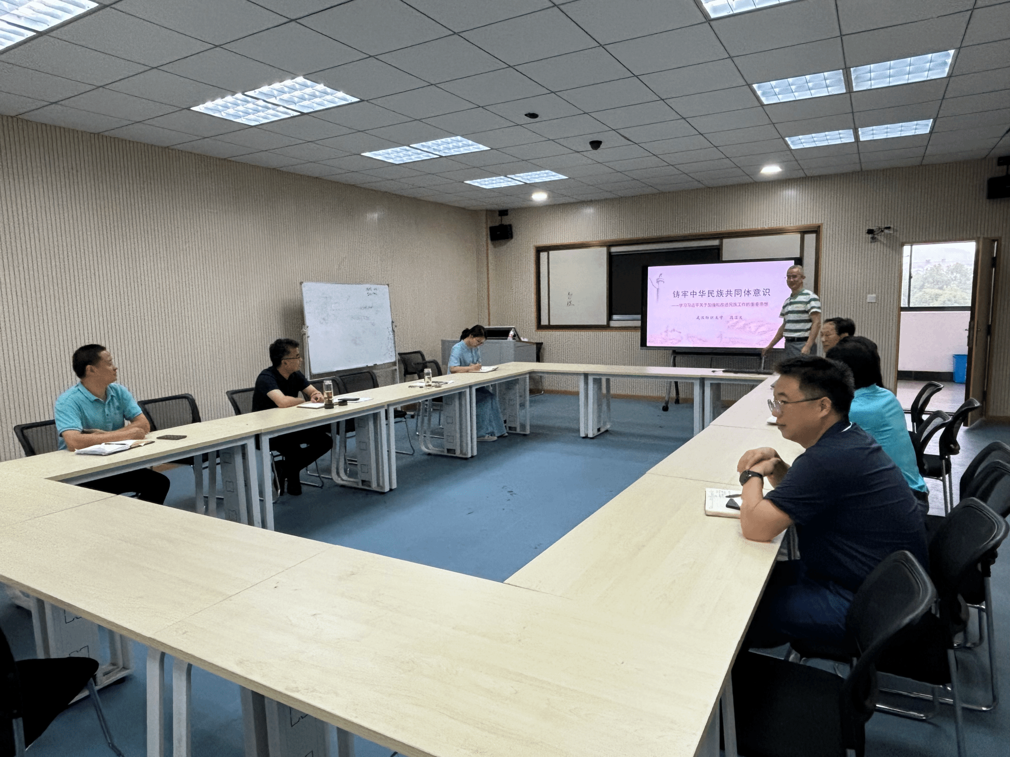 2024年6月27日上午,9428cn太阳集团在崇文楼206室举办铸牢中华民族共同体意识专题班暨党委理论学习中心组第六次集体学习,学院班子成员、党委委员参加学习。学院党委书记段溢波以《铸牢中华民族共同体意识——学习习近平总书记关于加强和改进民族工作的重要思想》为题做辅导报告。