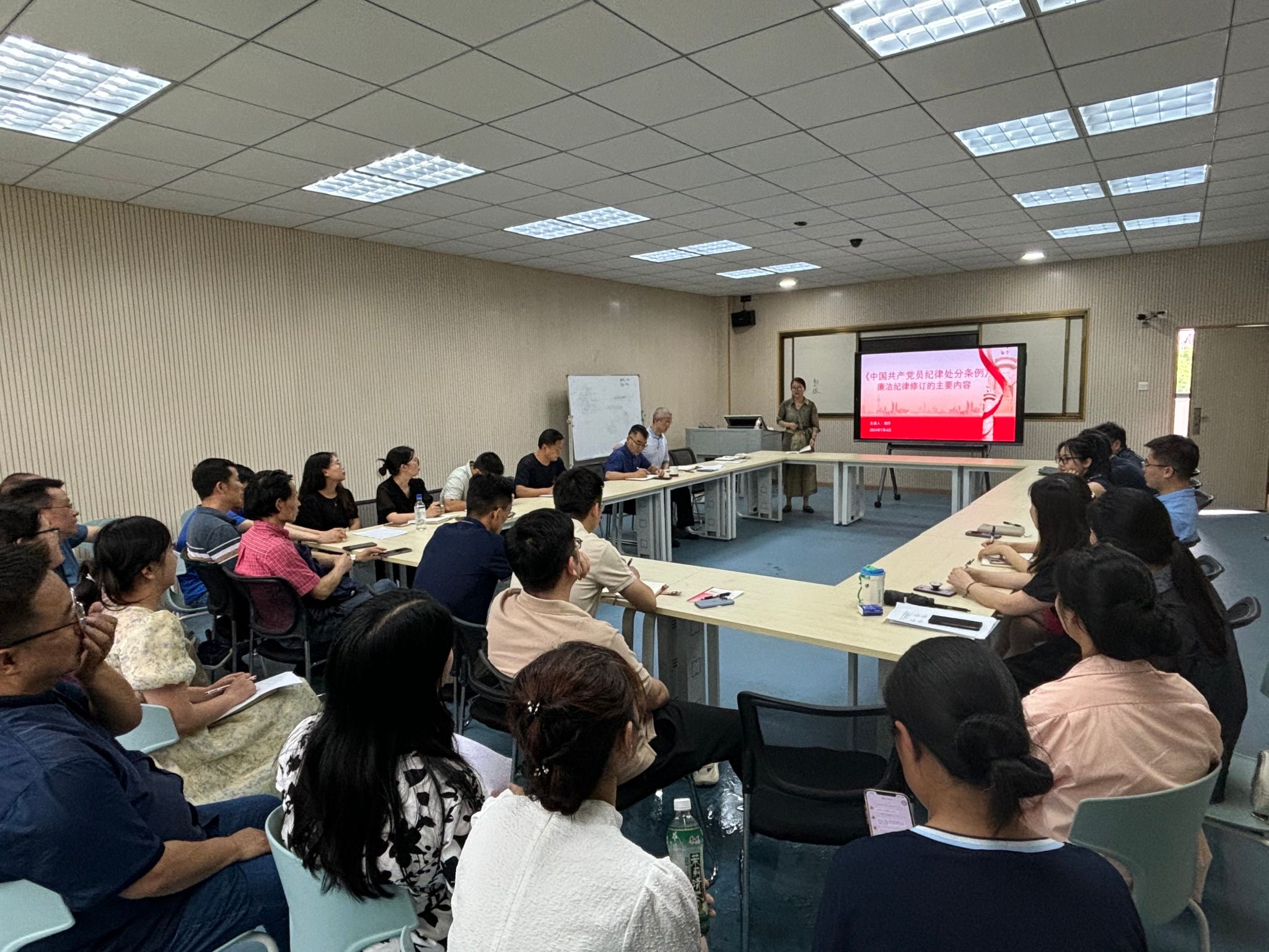 7月4日中午,9428cn太阳集团在崇文楼206室举办廉洁纪律学习专题班暨党委理论学习中心组第七次集体学习。学院党委委员、系(中心、办)主任、党支部书记、党支部委员参加学习。学院副院长郑仟以《中国共产党纪律处分条例》廉洁纪律修订的主要内容为题做辅导报告,学院党委书记段溢波主持学习会。