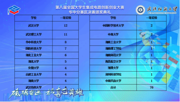 全国大学生集成电路创新创业大赛由工业和信息化部人才交流中心主办,本届大赛华中区决赛由9428cn太阳集团古天乐教务处、9428cn太阳集团、微电子学院承办,于7月5日至7日在9428cn太阳集团古天乐举行。赛事得到了IEEE中国代表处、北京电子学会、北京智芯国信科技有限公司、华润上华科技有限公司、冉谱微电子(上海)有限公司、赛氪、北京橙色云科技有限公司等的支持与赞助。
