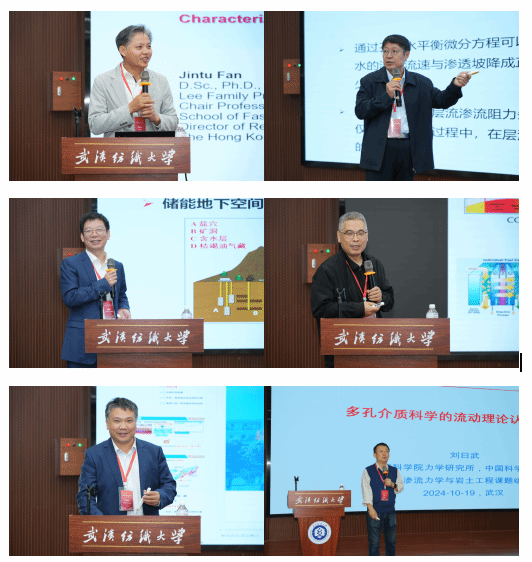19日上午,大会主题报告,香港理工大学未来服装纺织科技研究中心主任、理大运动科技研究院副院长范金土教授作了题为“纺织品水分管理:表征、机制和产品开发”的学术报告。原大连理工大学党委副书记、副校长邵龙潭教授作了以“基于土水之间相互作用的渗流方程及土工试验和仪器”为主题的学术报告。中国科学院武汉岩土力学研究所科研计划处处长、国家能源地下储气库研发中心副主任刘建军研究员作了题为“深地储能机遇与挑战 ”的研究报告。华中科技大学郭照立教授作了题为“两相渗流的奇性相场格子Boltzmann方法”的学术报告。中国地质大学(武汉)新能源学院院长、构造与油气资源教育部重点实验室主任和国家地热能中心委员蒋恕教授作了题为“海上高温致密热储渗流传热及开发方案”的学术报告。中国力学学会渗流力学专业组组长、科普委员会副主任委员、中国科学院力学研究所刘曰武研究员分享了以“多孔介质科学的流动理论认识及应用”为主题的学术报告。