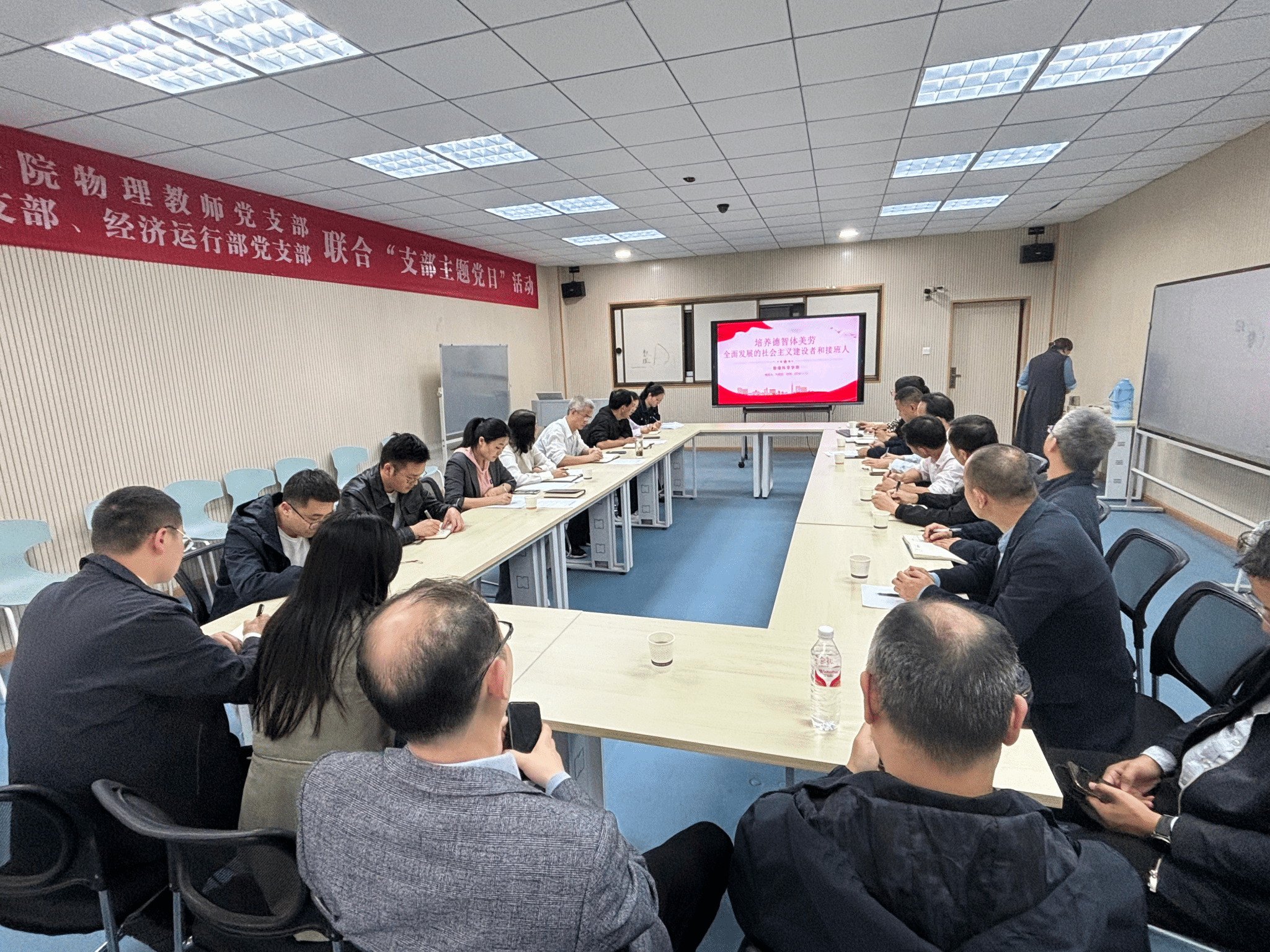 学院行政党支部书记刘莉丽领学了习近平同志《论教育》中收录的、2024年第17期《求是》杂志发表的习近平总书记的重要文章《培养德智体美劳全面发展的社会主义建设者和接班人》。文章强调,培养什么人,是教育的首要问题。我国是中国共产党领导的社会主义国家,这就决定了我们的教育必须把培养社会主义建设者和接班人作为根本任务。文章指出,怎样培养人,一是要在坚定理想信念上下功夫,二是要在厚植爱国主义情怀上下功夫,三是要在加强品德修养上下功夫,四是要在增长知识见识上下功夫,五是要在培养奋斗精神上下功夫,六是要在增强综合素质上下功夫。接着,与会人员观看了行政党支部制作的视频《培养德智体美劳全面发展的社会主义建设者和接班人》。