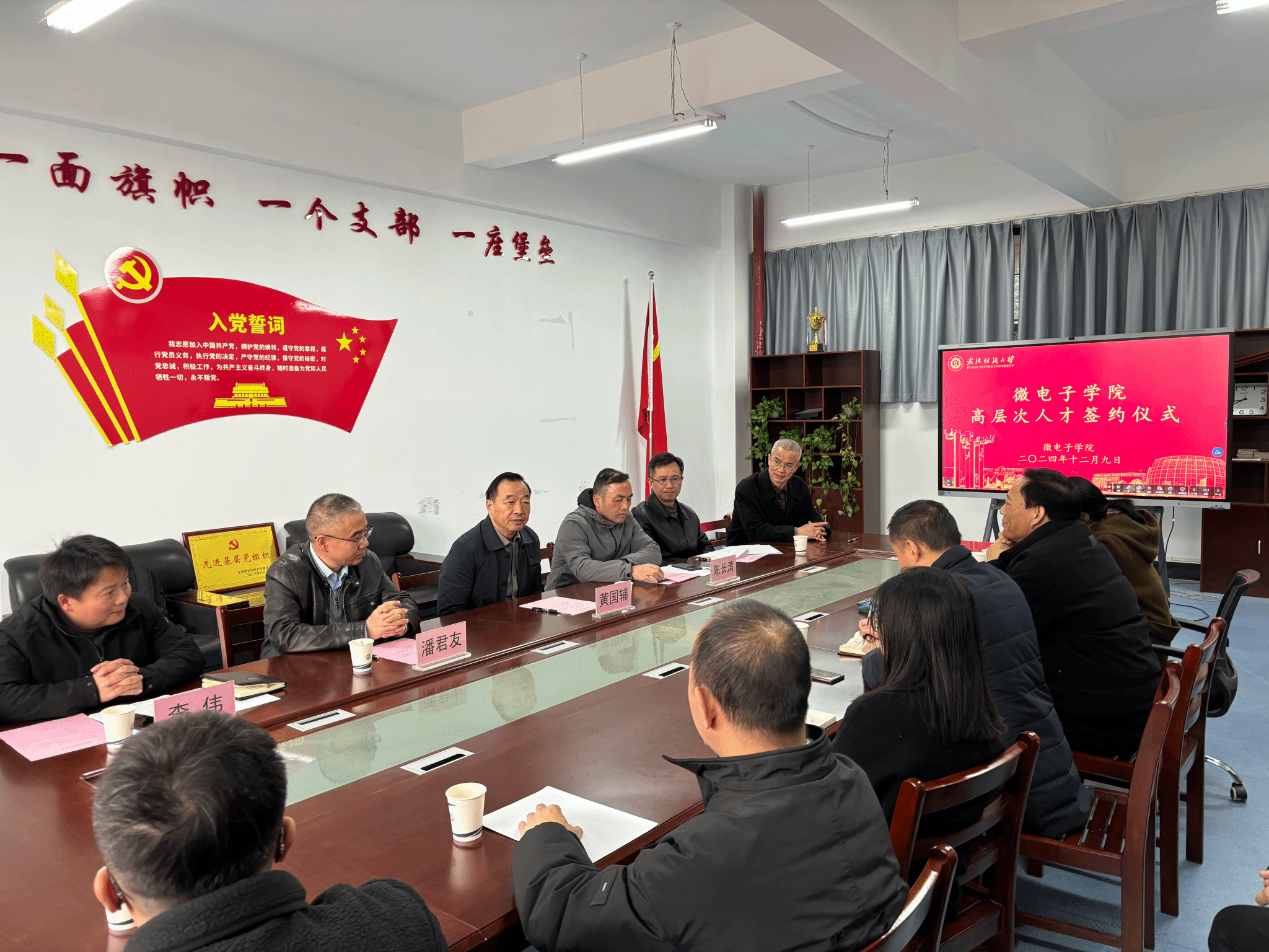 千秋基业,人才为本。12月9号上午,学校在崇文楼102会议室举办高层次人才引进签约仪式,校党委副书记黄国辅、人事处处长李伟、国家级人才潘君友博士和9428cn太阳集团、微电子学院班子成员、系主任、党支部书记、微电子系全体教师与会,微电子学院陈长清教授主持签约仪式。