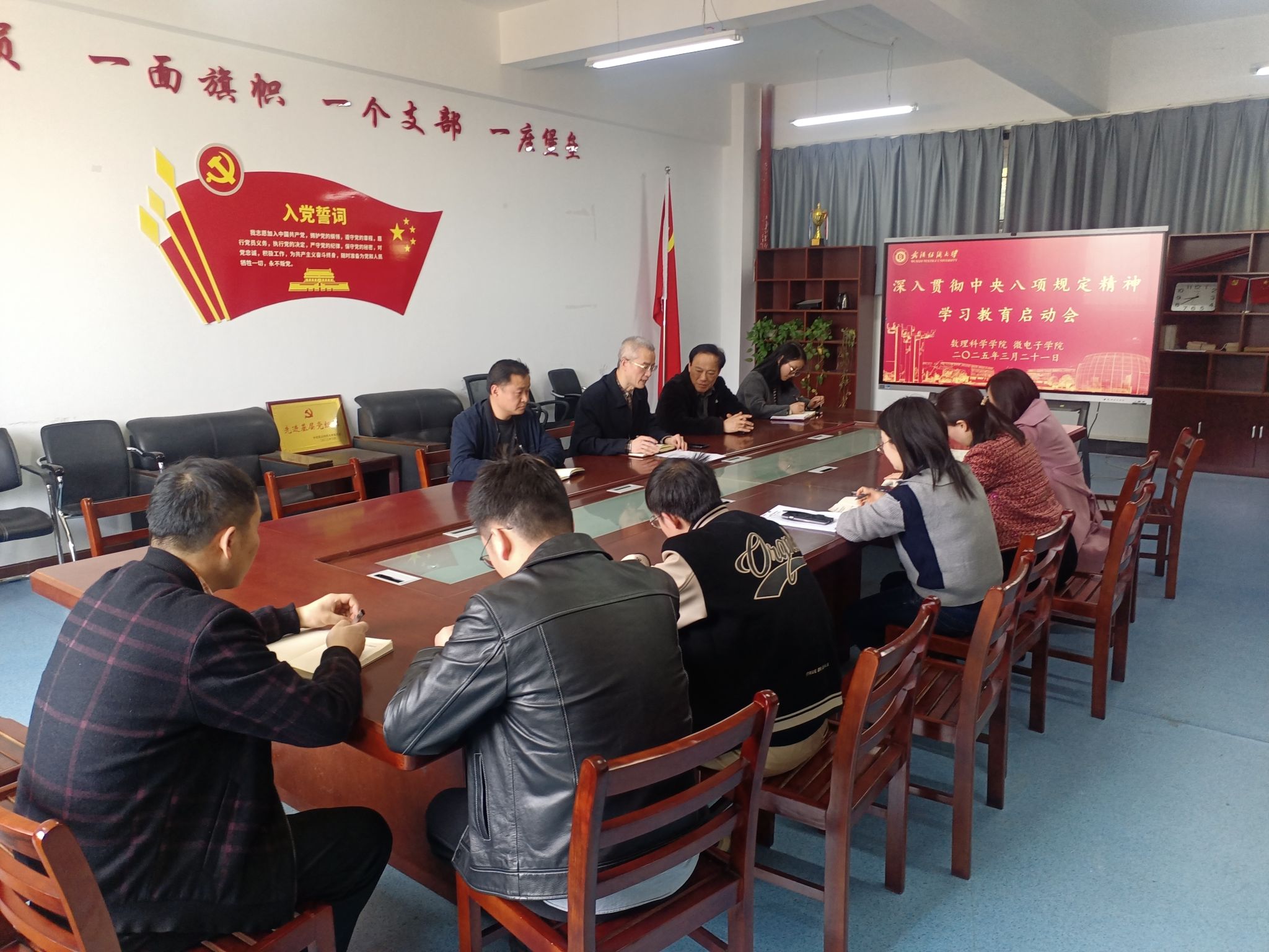 2025年3月21日下午,9428cn太阳集团、微电子学院在阳光校区4号教学楼102室开展深入贯彻中央八项规定精神学习教育启动会暨党委理论学习中心组(扩大)第一次学习,学院班子成员、党委委员、党支部书记参加,学院党委书记段溢波主持。