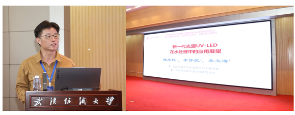 强志民教授做了题为“新一代光源UV-LED在水处理中的应用展望”的报告,报告介绍了紫外消毒技术中的剂量测定和反应器优化方面的研究成果,包括开发高精度荧光微探头、建立剂量验证新方法、优化消毒器构型及节能策略,并指出UV-LED是未来重要研究方向。