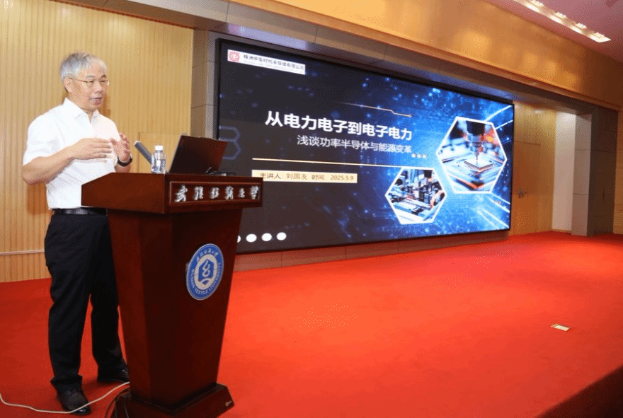刘国友副总工程师做了题为“从电力电子到电子电力-浅谈功率半导体与能源变革”的报告,报告系统阐述了功率半导体技术从硅基到碳化硅的演进,及其在能源交通智能化、新型电力系统和“双碳”战略中的核心应用,同时分析了技术挑战与中国未来发展趋势。