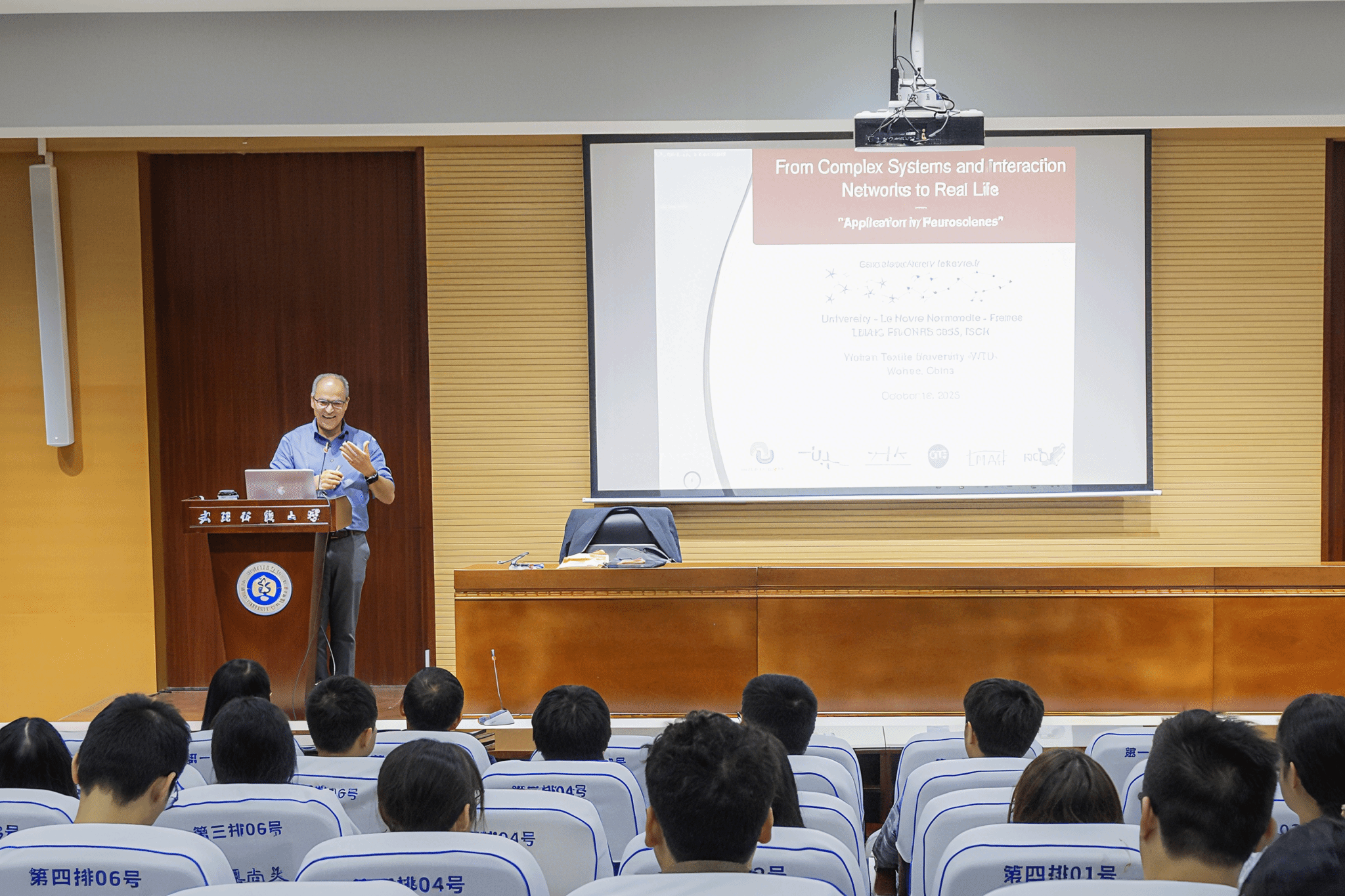 Aziz教授系统回顾了复杂系统与网络领域在理论方法和分析工具上的飞速发展,将复杂系统精辟地定义为“由大量异构实体组成的系统,这些实体基于局部互动,在不同尺度上涌现出集体结构与组织”。 他聚焦偏微分方程和常微分方程构成的网络系统,结合一系列生动的案例,深入浅出地阐述了这些理论如何被应用于神经科学领域。Aziz教授详细展示了如何运用复杂网络模型模拟大脑神经元的动态互动,从而揭示脑波节律、信号传播等复杂动力学现象的产生机制,清晰呈现了抽象数学理论与生命科学前沿问题之间的深刻联系。在报告中,Aziz教授特别强调了“复杂思维”在解决现实问题中的关键作用。他指出,从神经系统、疾病研究到社会动态分析等一系列跨学科挑战,复杂系统理论所提供的整体性、关联性和动态性的“复杂思维”,为我们提供了全新解决路径与方法。