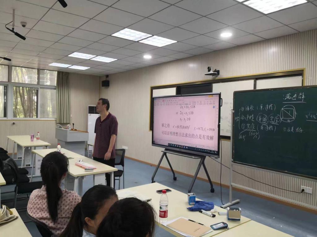 在下午的讲座中,覃太贵教授以《多目标规划》为主题,从基本建模方法、数模论文写作以及模拟训练三个方面详细的给大家讲述了如何做好数学建模竞赛,并强调了竞赛中团队合作要胜于分工。讲座中,覃教授结合具体案例深入浅出地介绍了各种多目标优化模型,展示了数学建模中常用的一些方法与技巧。