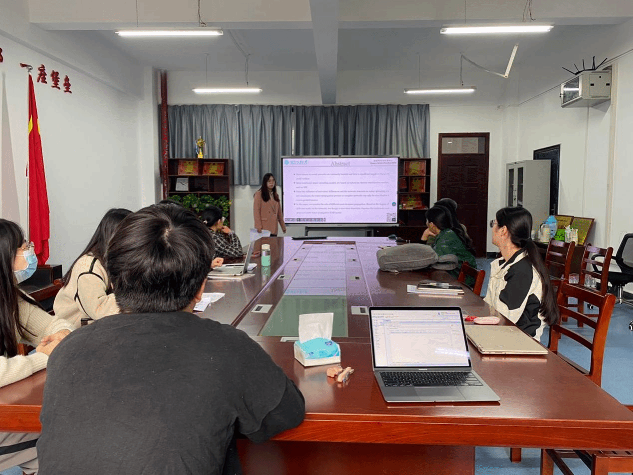 应用数学与交叉科学研究中心复杂网络团队于2023年11月第2周进行每周小组组会,小组全体成员和各位导师共同参加。在这次组会上,由三名研二学生分别汇报自己的研究进展,然后老师与同学们对汇报内容进行学术探讨,并对存在的问题给出相应的指导和建议。