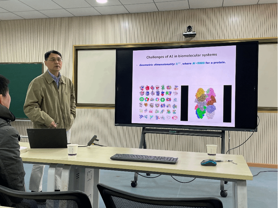 为了促进学科交叉,加强团队合作,进一步提高我院科学研究水平,我院于12月25日上午10点在205成功举办第550期阳光论坛暨第87期学术沙龙活动。本次活动邀请了美国密歇根州立大学的魏国卫教授做题为“How mathematical AI is transforming biosciences?”的学术报告。学院副院长郑仟教授、数学和物理专业及大数中心相关老师及全体研究生参加了本次活动。