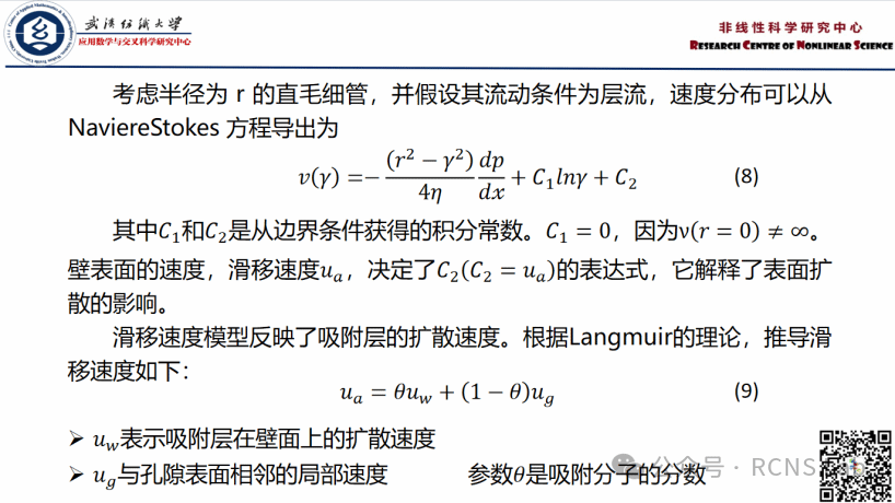 徐静蕾:本次组会介绍了一个描述表面扩散对页岩气输运影响的模型。该模型模拟了干酪根孔隙中的多种流动机制,考虑了表面扩散、其对滑移速度的影响以及粘性流和克努森扩散贡献的非线性组合。此外,考虑到表面扩散产生的额外粘性通量,开发了改进的气体滑移模型。使用真实的干酪根特性进行敏感性分析,以确定表面扩散对气体渗透率的贡献。