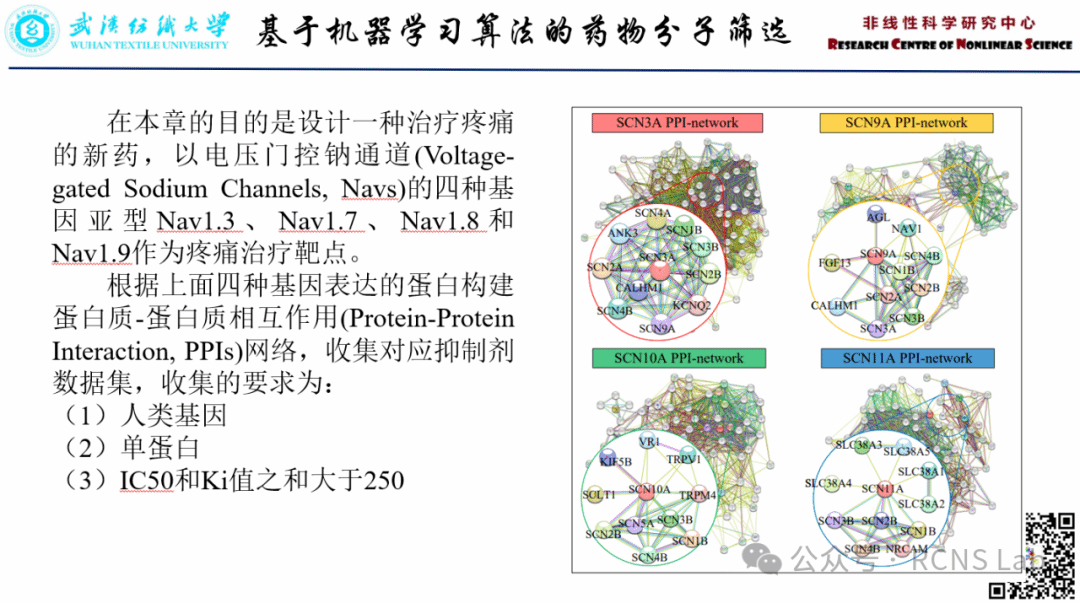 窦博正:本次汇报了毕业论文的研究内容。药物分子数据,特别是疼痛及药物成瘾相关的数据涉及多种药物分子属性及研究内容,这些数据对于药物研发、药物活性预测和药物分子虚拟筛选等研究至关重要。随着人工智能技术的快速发展,机器学习算法在药物分子数据分析方面具有广泛的应用。此外,以代数拓扑理论为核心的拓扑数据分析方法在药物设计领域取得巨大成功,提高了药物分子虚拟筛选的准确度和效率。因此,我们结合机器学习、深度学习以及代数拓扑,通过收集和分析药物成瘾数据和疼痛相关分子数据,筛选治疗药物成瘾和疼痛的先导化合物分子,并详细介绍了用于处理小样本药物数据集的机器学习方法。