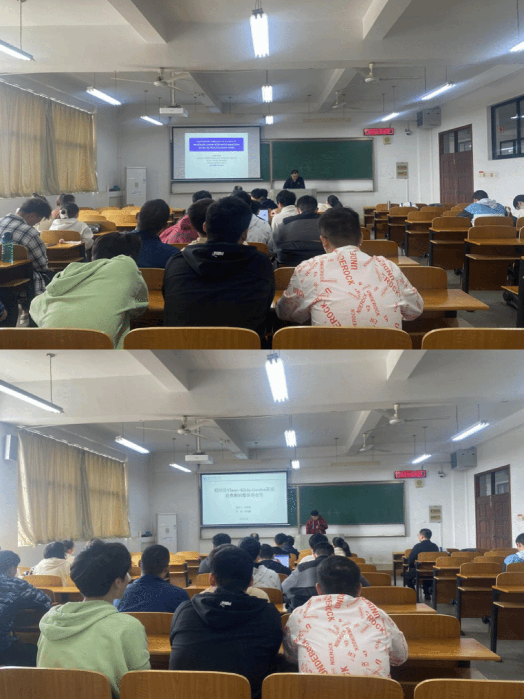 余荣春:本次汇报了考虑一个经典粒子与克莱因-戈登场耦合的无碰撞系综。对于由此产生的非线性偏微分方程组,即相对论性Vlasov-Klein-Gordon系统,证明了经典解的局域时间存在性,并证明了只有当粒子动量变大时解才会爆炸的延续准则。还证明了在一维情况下经典解在时间上是全局的。并且还研究了初始数据小扰动下相对论性Vlasov-Maxwell系统经典解的行为。首先,证明了解连续地依赖于各种范数的初始数据。主要结果是关于全局解的:一个电磁场以某种方式长时间衰减的全局解在初始数据的小扰动下保持全局,并保持场的衰减行为。因此,这样的全局解决方案是通用的。
