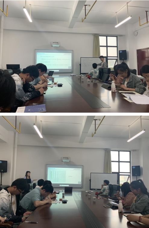 应用数学与交叉科学研究中心数学与纤维材料团队在2024年4月23日上午9:00于崇真楼3028教室进行每周小组组会,小组全体成员和各位导师共同参加。在这次组会上,由研二研一四名学生分别汇报自己的研究进展,然后老师与同学们对汇报内容进行学术探讨,并对存在的问题给出相应的指导和建议。
