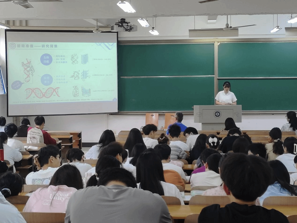 邵曼婷同学毕业论文题目是基于Monte Carlo的DNA发夹结构预测。她用两个疑问句引出论文课题主要内容是通过构建一个新的DNA粗粒化模型并结合Monte Carlo抽样算法,成功实现了DNA发夹结构的从头预测。随后,她介绍了为什么研究以及如何实现。她指出所构建模型在处理更大、更复杂的DNA发夹结构时仍面临挑战,针对模型的局限性,提出了几点可能的改进措施。关于本次毕业论文做下来的一整个过程中,她感慨道她提升了写作能力、巩固了专业知识技能,并且深深感受到将一件事情做到极致,结果一定不会让你失望!