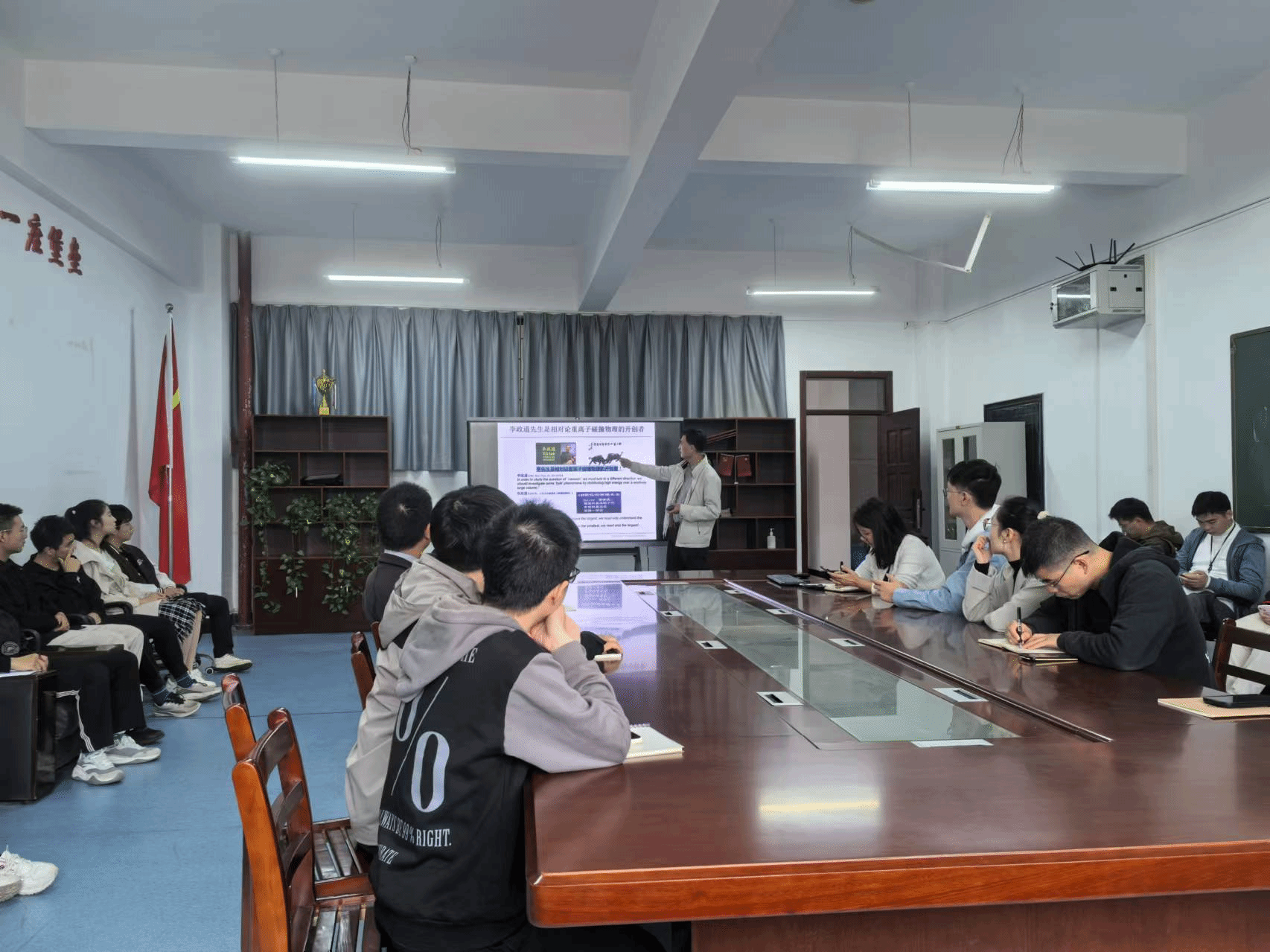 在报告结束后,马国亮研究员与学院参会师生进行了深入的交流与互动,针对青年教师和学生提出的各种问题,他都给予了耐心而详尽的解答。此次论坛不仅加深了我院师生对国内外高能核物理理论与实验研究现状的理解,也为学院未来拓展更多学术合作与交流提供了宝贵的契机。