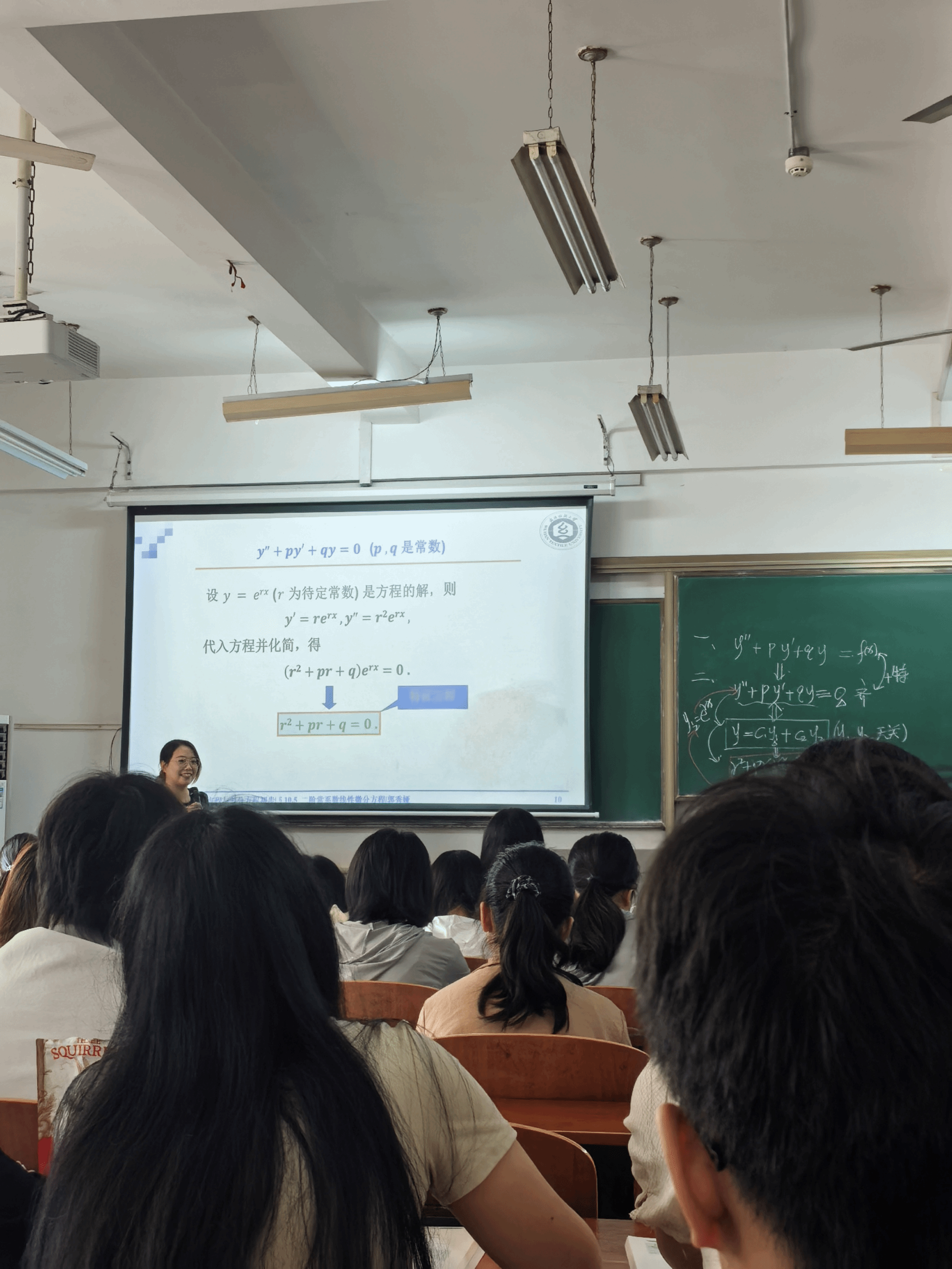 上午的观摩课,郭秀娅老师带来“二阶常系数齐次线性微分方程解的结构”课程,她运用多媒体辅助教学,以生动形象的示例演示二阶常系数齐次线性微分方程解的结构变化,将复杂的数学理论简单化。同时,通过对比分析不同类型方程的特点,帮助学生梳理知识脉络,建立清晰的知识体系。课程中设置的典型例题讲解,让学生进一步掌握解题方法与技巧。
