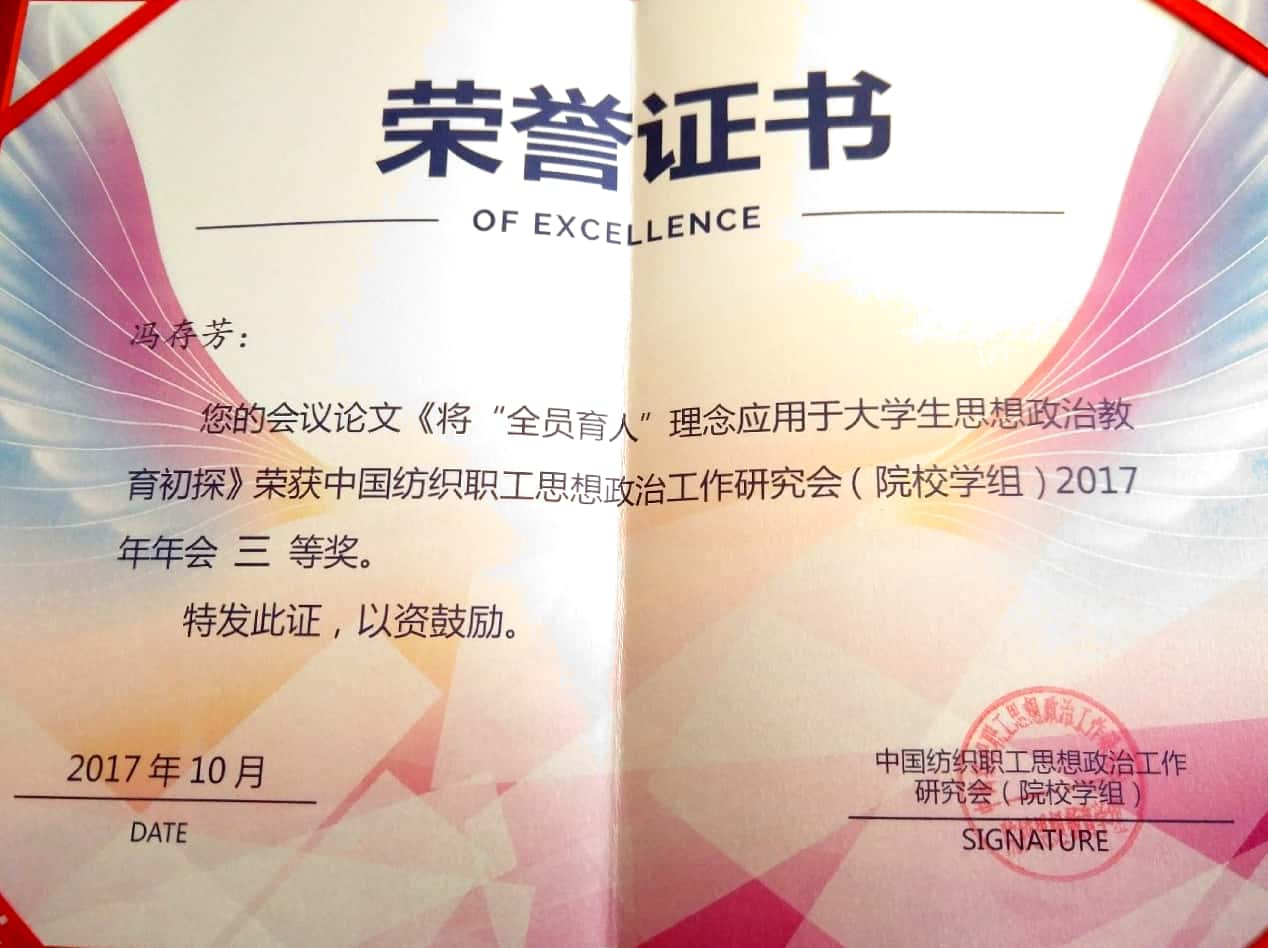 会议对各校推荐的论文进行了评选,我院推荐大学物理课程思政教学团队成员冯存芳老师撰写的论文《将“全员育人”理念应用于大学生思想政治教育初探》荣获三等奖。
