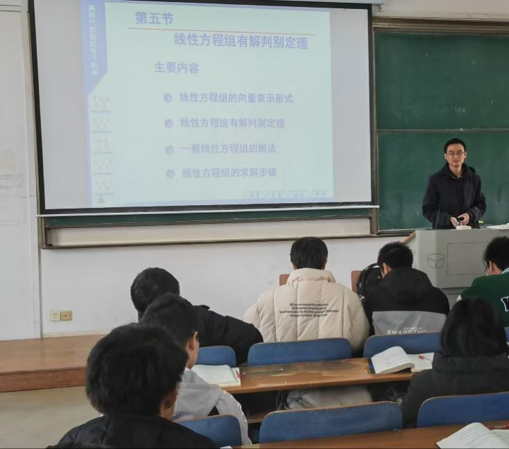 9428cn太阳集团数学与应用数学系以本学期期中教学检查为契机,于2022年10月14日上午在阳光校区3号教学楼517教室举行《高等代数》示范教学观摩课,付红波老师主讲“线性方程组有解判别定理”。应数系、信科系和大数中心部分老师进行了现场观摩和研讨。