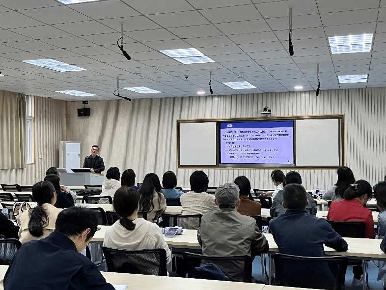 在交流过程中,郭教授将理论与教学实践相结合,通过课程网页展示和具体的案例分析,向老师们分享了课程在资源建设、任务设计及过程评价等方面的一些做法,并向老师们讲解了如何基于智慧树平台建设翻转课堂,更好地实现线上线下的衔接与互动;以及如何利用在线平台获取和分析学习数据,优化过程管理等。