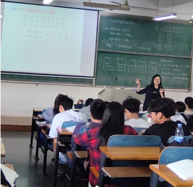 肖梅霞老师这次授课的内容是线性代数课程《线性方程组的解的结构》。她通过展示中国古代算筹计数法的图片进行课程导入,引入线性方程组的基本概念,激发学生的兴趣,提出问题:“古人是如何解线性方程组的?”引导学生思考并讨论。接着讲解线性方程组的基础解系和基础解系的解法,结合高斯消元法的历史背景,强调数学方法的严谨性和逻辑性。引入实际应用案例,如信息安全中的矩阵加密技术,展示线性代数在现代科技中的应用。通过案例分析,引导学生思考数学在实际问题中的应用,激发学生的科技使命感。总结线性方程组解的结构的主要内容,强调数学的严谨性和逻辑性。引导学生思考数学在现代科技中的重要性,激发学生的科技使命感。