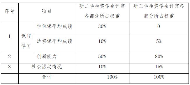 研究生国家奖学金评定细则由德育分、课程学习、创新能力、社会实践活动四个部分组成。其中德育分施行一票否决制,其他三部分采取评分制,具体分值分配如下: